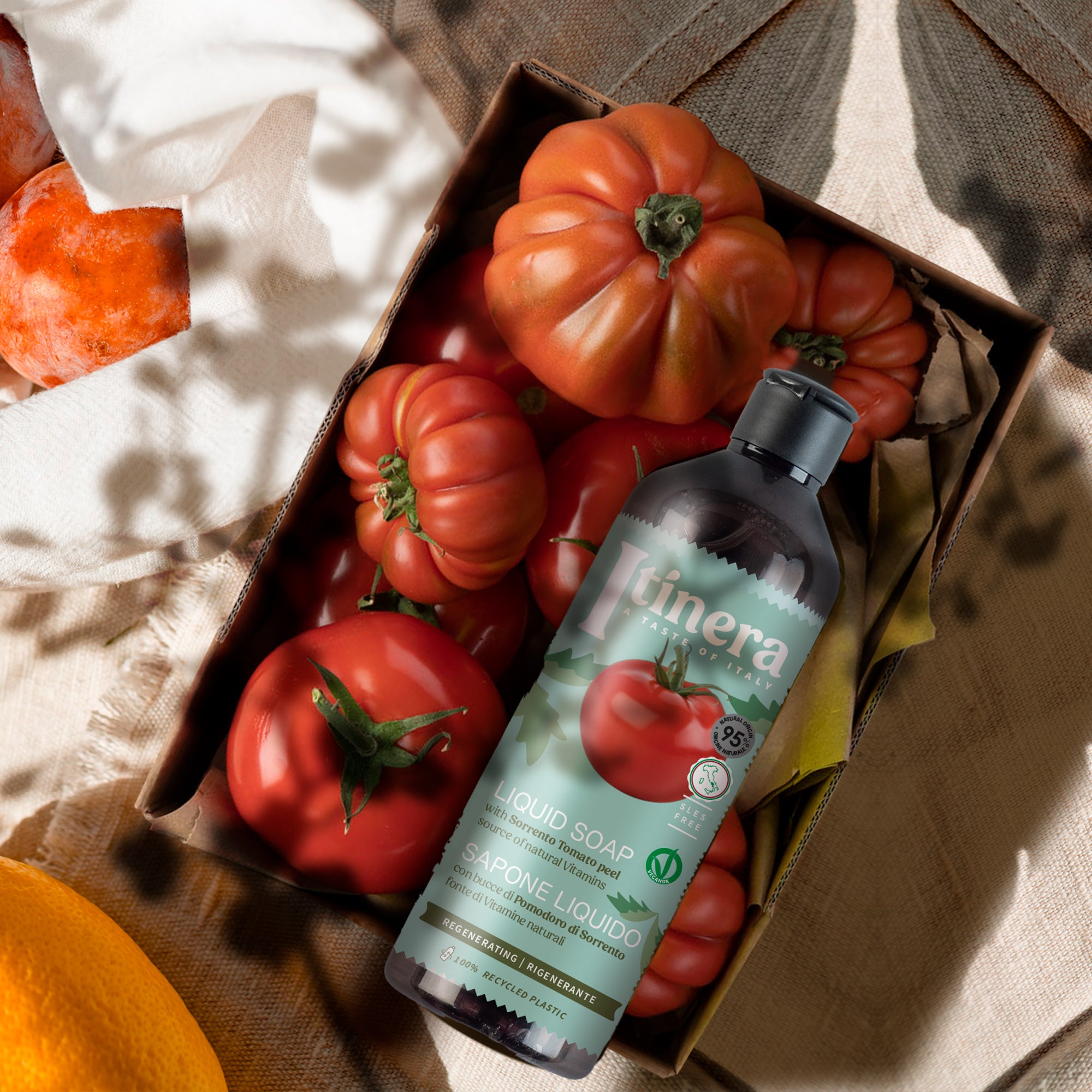The tomatoes are naturally rich in antioxidants and vitamins, and stars in the cleansing formula of the Body Wash with Sorrento tomato peel. The formula contains 95% of natural ingredients, features a blend of ultra-mild plant-derived surfactants, including aloe vera juice and Glycerin, which ensures softness and protection.