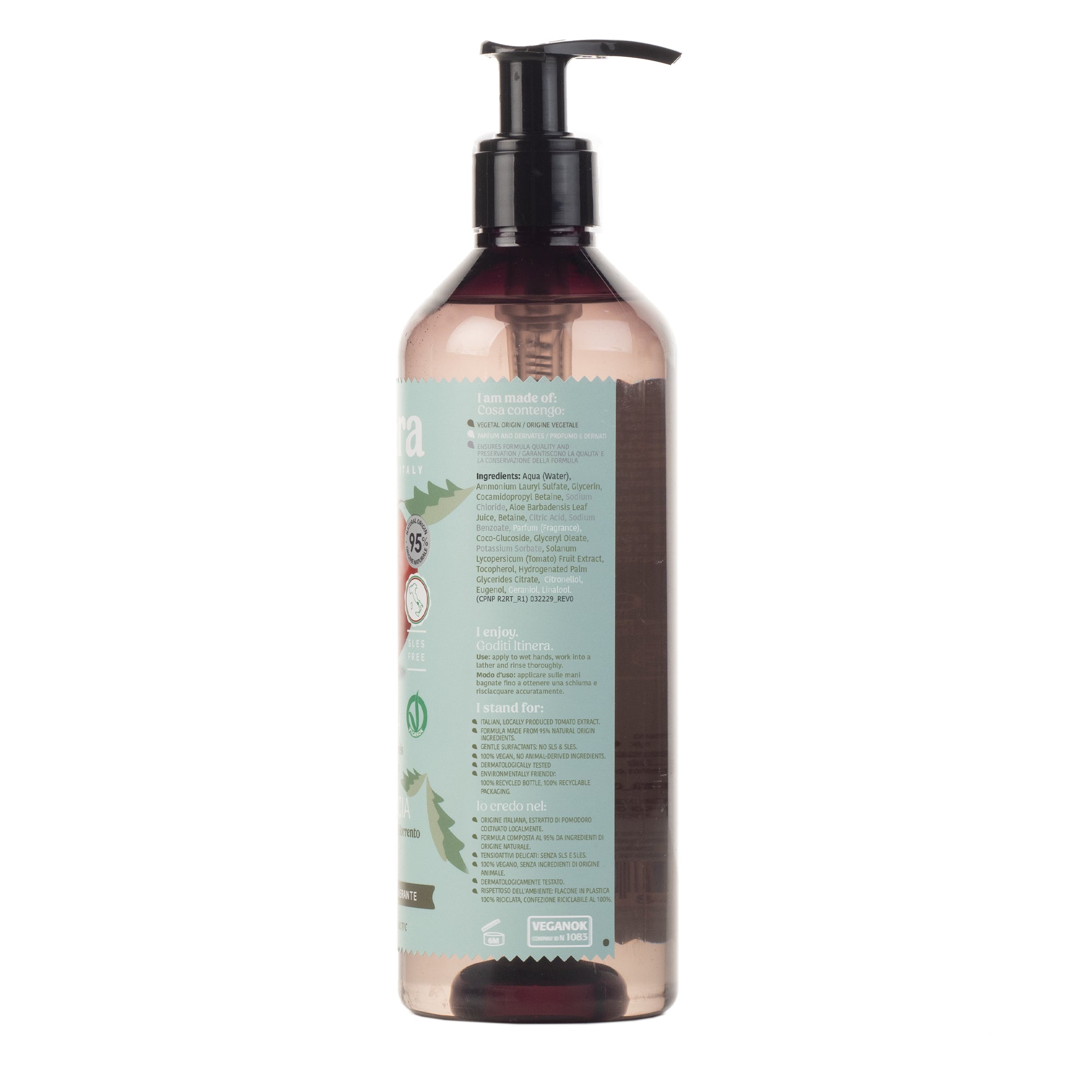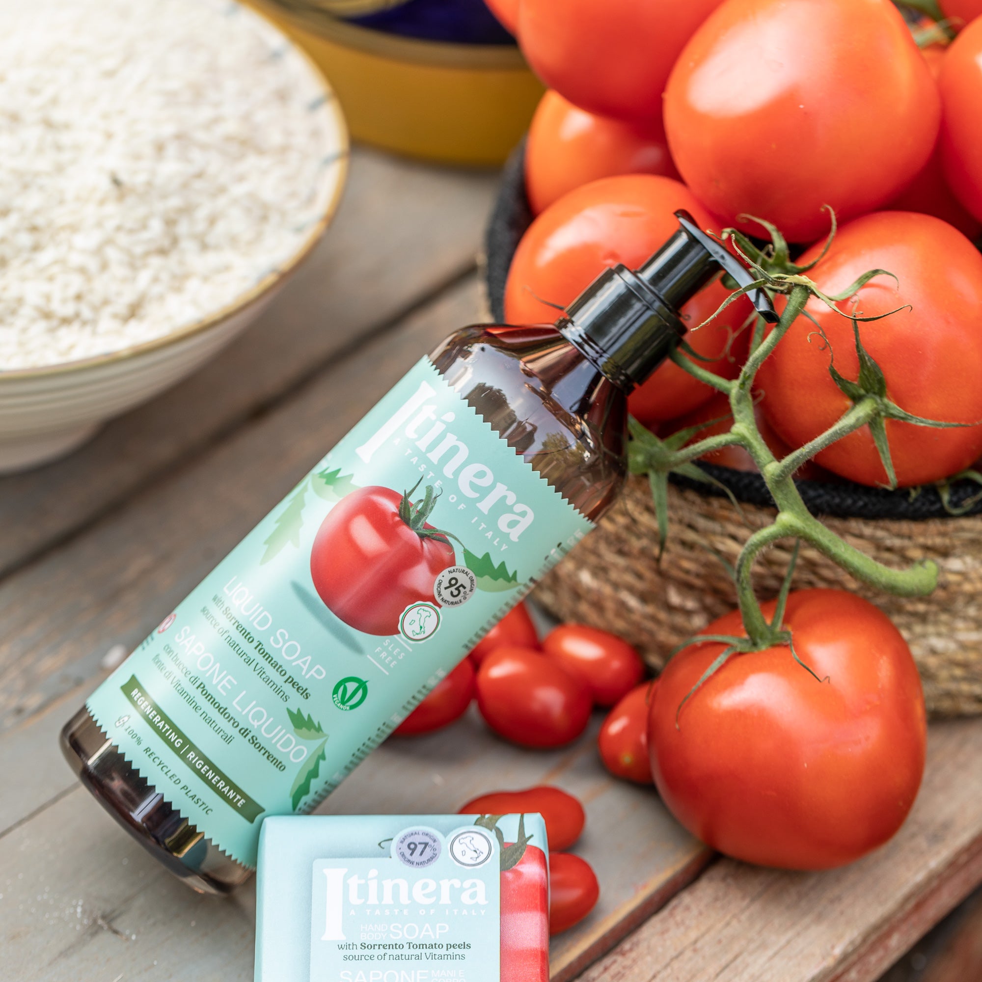 The tomatoes are sourced from the Sorrento peninsula and its extract features toning, nourishing and skin purifying properties. A symbol of Mediterranean cuisine, endowed with refined organoleptic properties. In addition to this, it is naturally rich in antioxidants, vitamins, and stars in the cleansing formula of the Liquid Soap with Sorrento tomato peel.