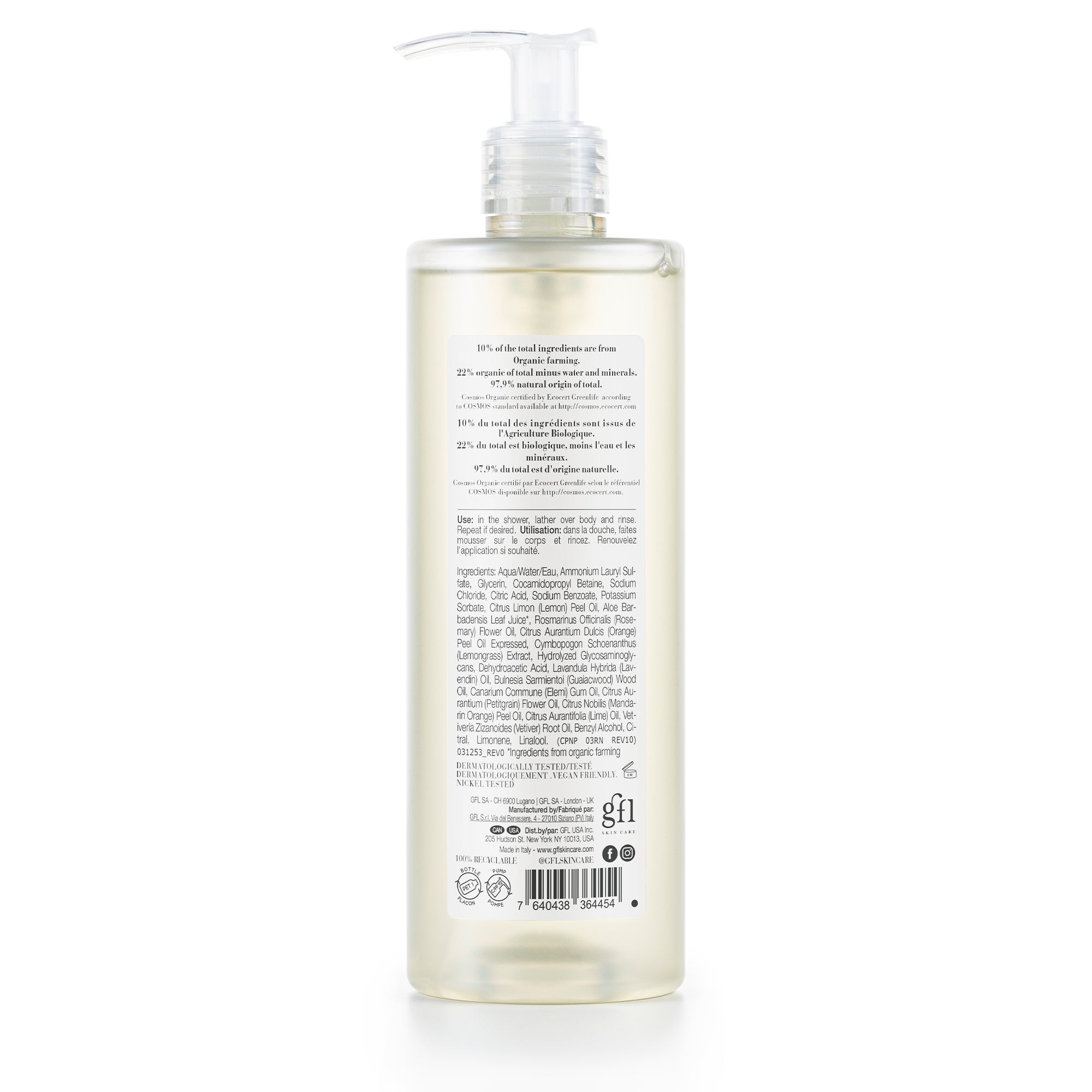 xUn limpiador corporal de corteza de cítricos realzado con agradables notas de madera de guayaco, certificado Cosmos bio por Ecocert, hace que la higiene diaria sea más positiva. Su fórmula limpiadora enriquecida con agentes calmantes limpia la piel en profundidad, dejando una sensación de confort y suavidad.