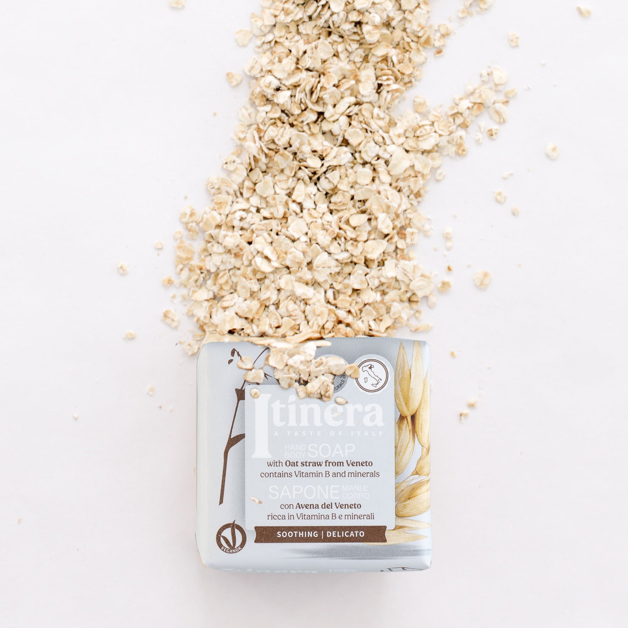 Jabón corporal de manos calmante con paja de avena del Véneto. Contiene vitamina B y minerales. (Peso neto: 3,52 onzas)