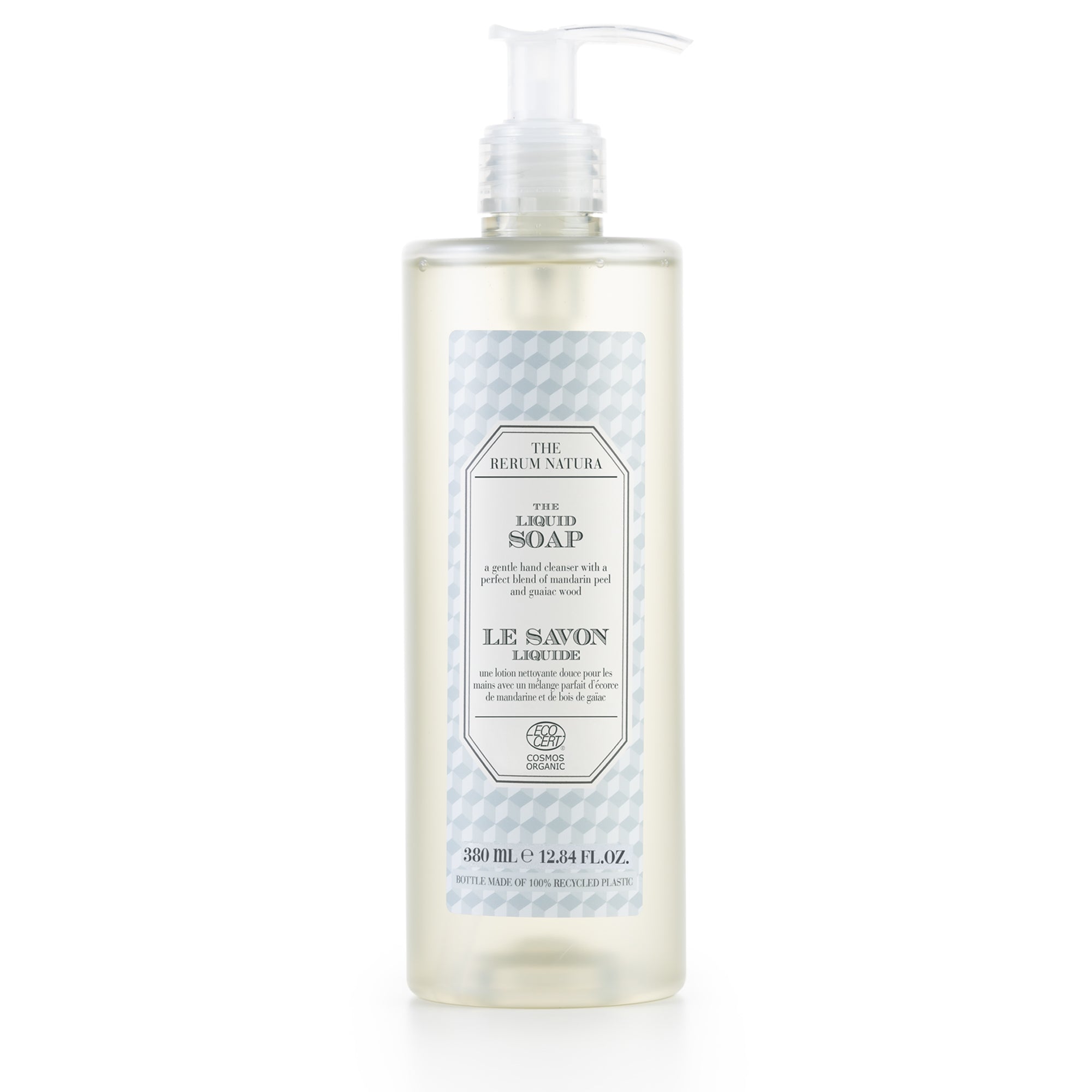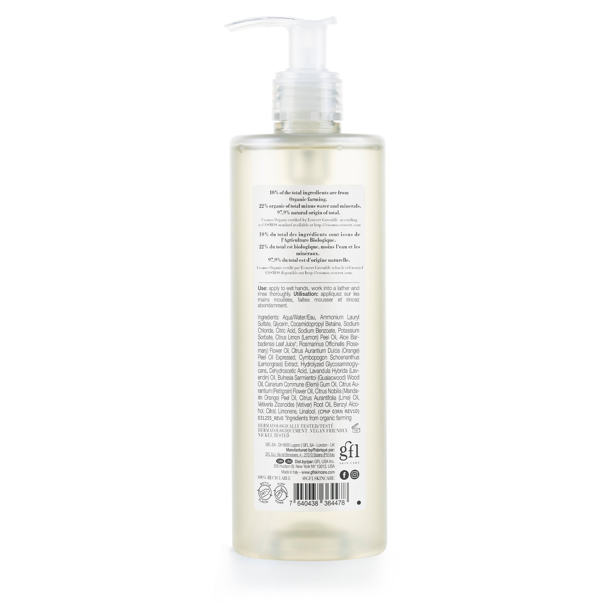 xUn delicado jabón de manos con una mezcla perfecta de corteza de mandarina y madera de guayaco, certificado Cosmos bio* por Ecocert, hace que la higiene diaria sea más positiva.