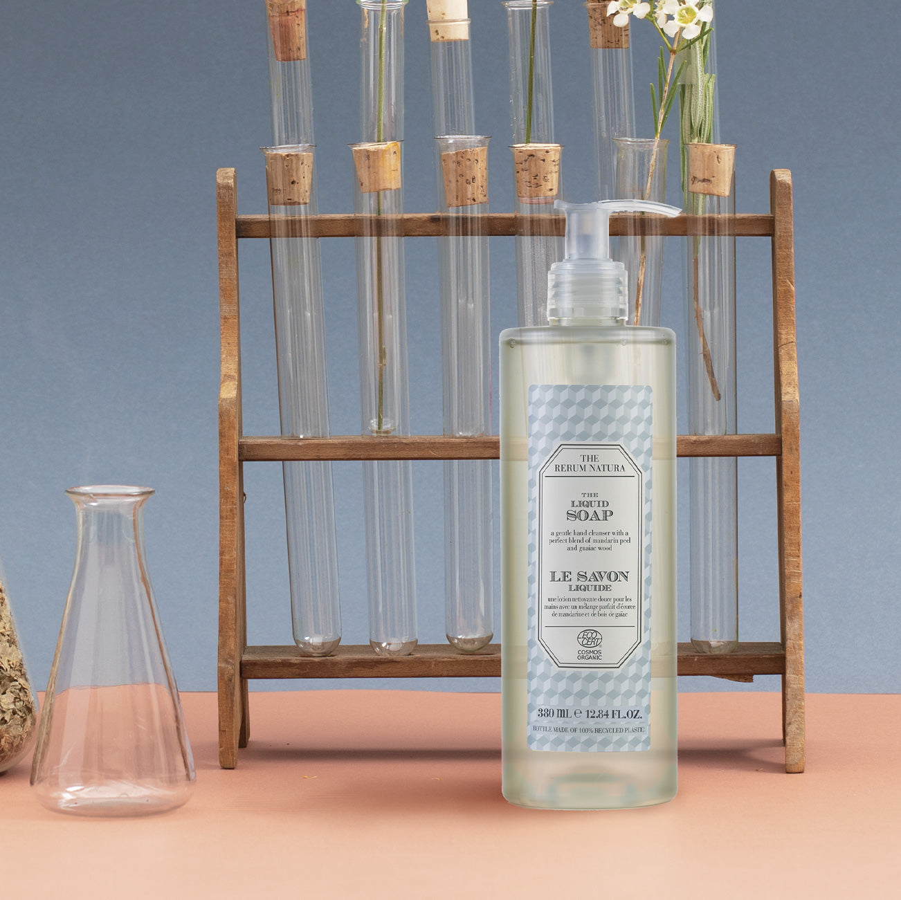 Los frascos de Rerum Natura están fabricados con PET 100% reciclado postconsumo, 100% reciclable.