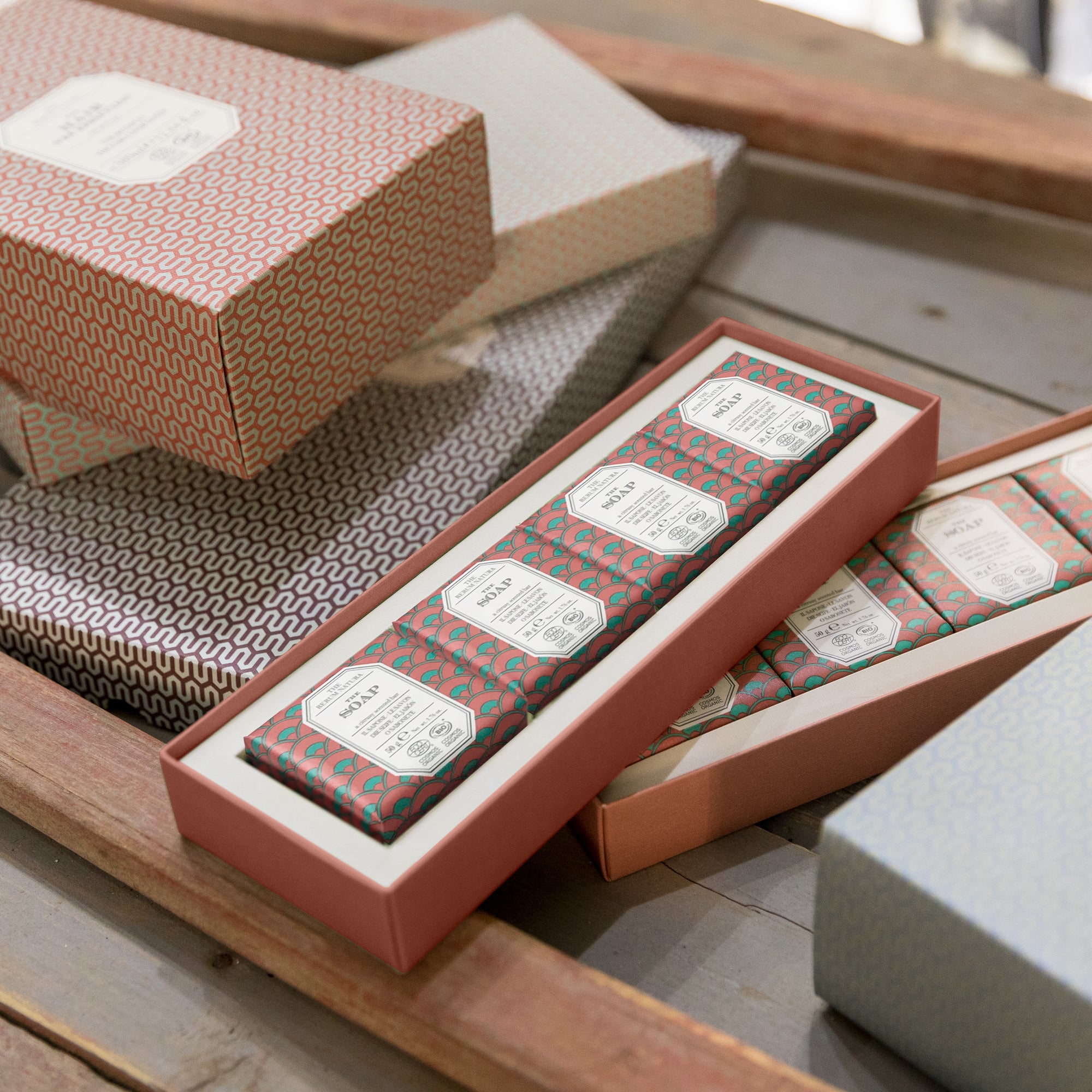 xLa casa del jabón se presenta en una caja muy elegante y texturizada.