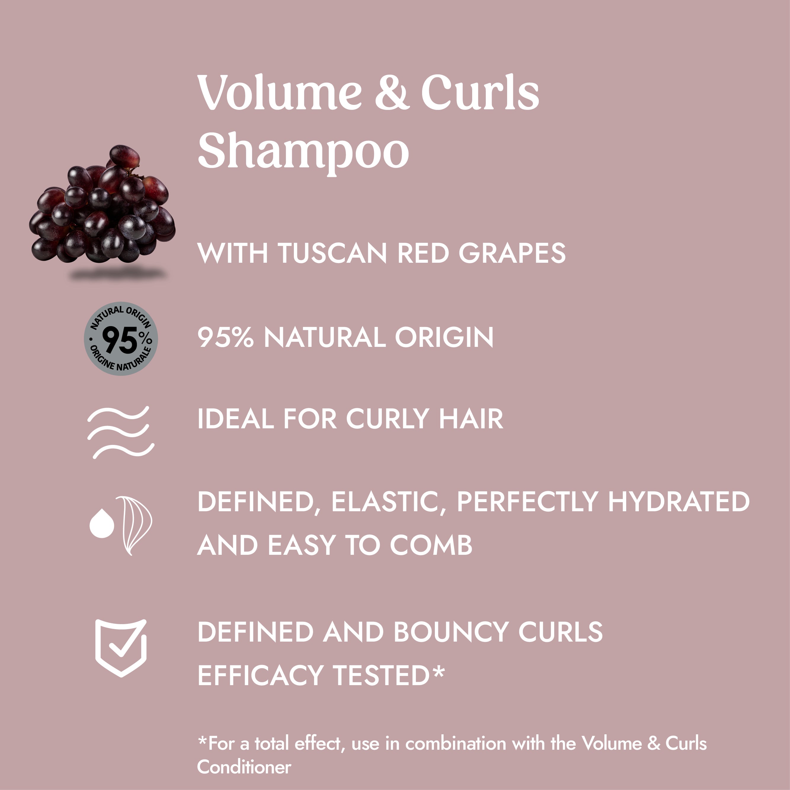 Situadas entre el mar y la montaña, las colinas de la Toscana se erigen en una región vinícola marcada por una calidad y una variedad de uvas excepcionales. La uva tinta, con su zumo único, caracterizado por la presencia de resveratrol en las semillas y la piel, es un excelente antioxidante e hidratante, para unos rizos definidos, fáciles de desenredar y peinar.
